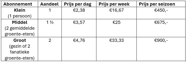 Wanneer je je aanmeldt doe je een aanbetaling van €150 per abonnement. Daarmee ben je verzekerd van een oogst-aandeel en kunnen wij alvast zaden, plantgoed en materialen voor het nieuwe teeltseizoen aanschaffen.